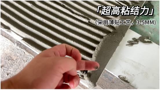 另一方面可以確保瓷磚膠在批刮上墻拉成鋸齒狀后,不易干燥結皮,使瓷磚膠保持濕潤狀態,確保了瓷磚雙面鋪貼時的粘結力,是可以真正薄貼的瓷磚膠。